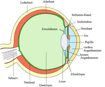 Abbildung 1: Schematische Darstellung des Auges (Bildquelle: Wikipedia. Autor: Talos, colorized by Jakov)