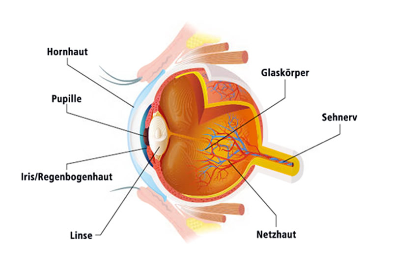 Die Netzhaut (Retina) kleidet den Innenraum Ihres Auges aus. Sie verarbeitet die Bilder, welche Sie sehen und sendet diese zum Gehirn. Ein Netzhautriss kann dazu führen, dass sich die Netzhaut von ihrer Unterlage ablöst (Netzhautablösung). Dies kann zu einem partiellen oder kompletten Sehverlust führen.